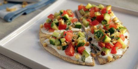 - Prepare your pizza by brushing the pita with oil. Place on a baking sheet and broil 4 inches from the heat for 2 minutes. Meanwhile, get a mixing bowl and add the olives, vinegar, garlic, oregano, basil, salt, pepper, and any remaining oil, mix well